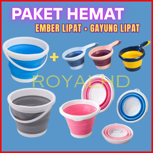Paket Hemat Ember Gayung Lipat 3 5 10 Liter Ember Lipat Portable Silikon Baskom Multifungsi Foldable Bucket Travel Haji