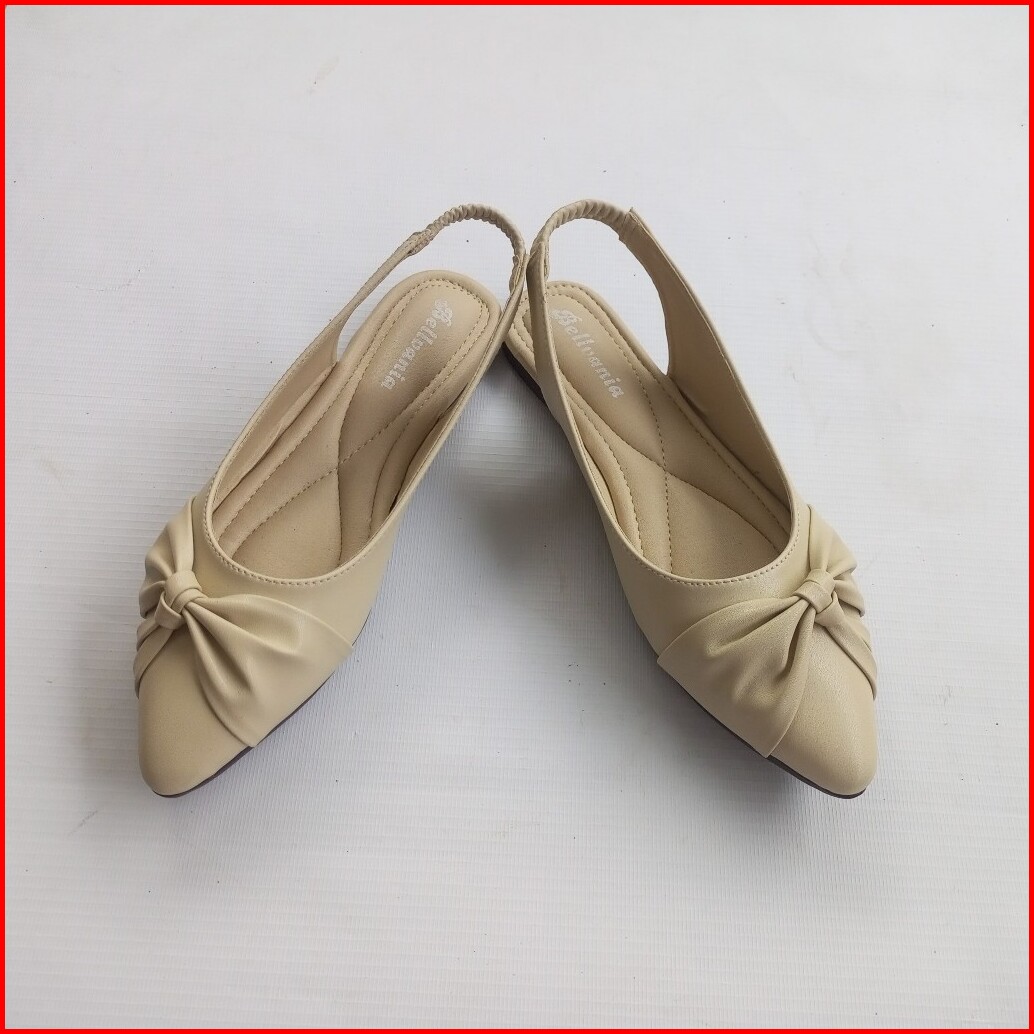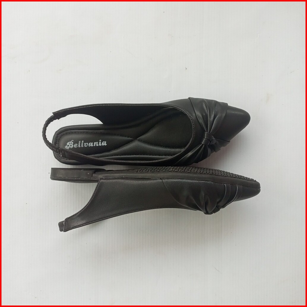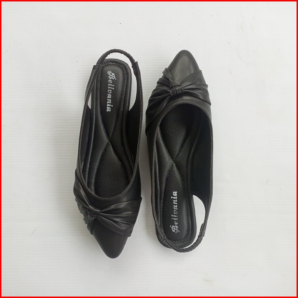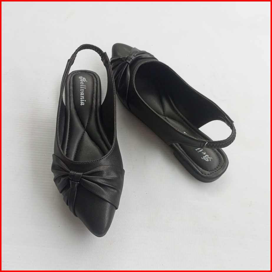 Bellvania Sepatu Wanita Flat Shoes Kekinian Style Hitam Elegan Tali Belakang Karet Jumbo 41