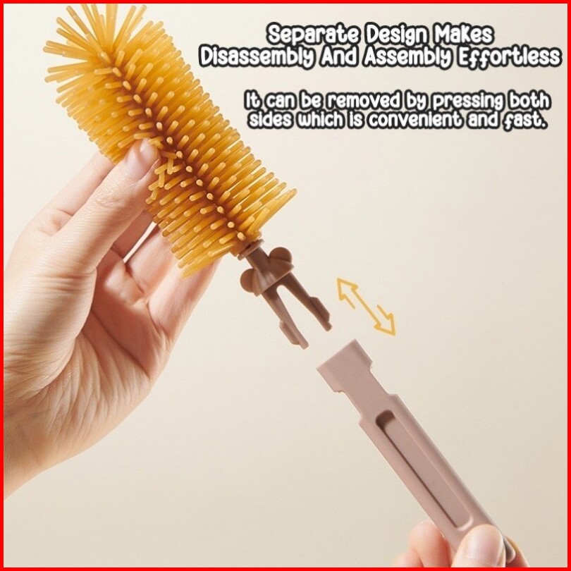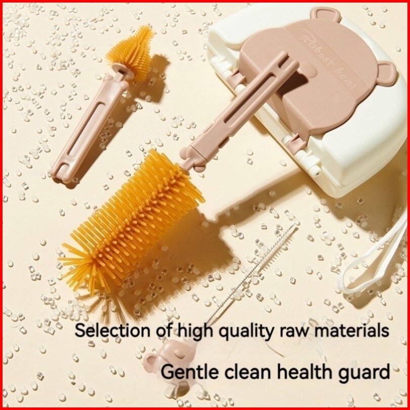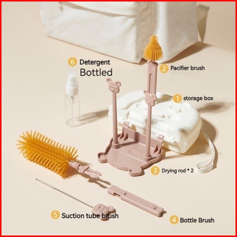 Hippoland Set Sikat Botol Bayi 8 In 1 Sikat Botol Silikon Perjalanan Portabel Bayi Tempat Drainase Multifungsi Sikat Pem