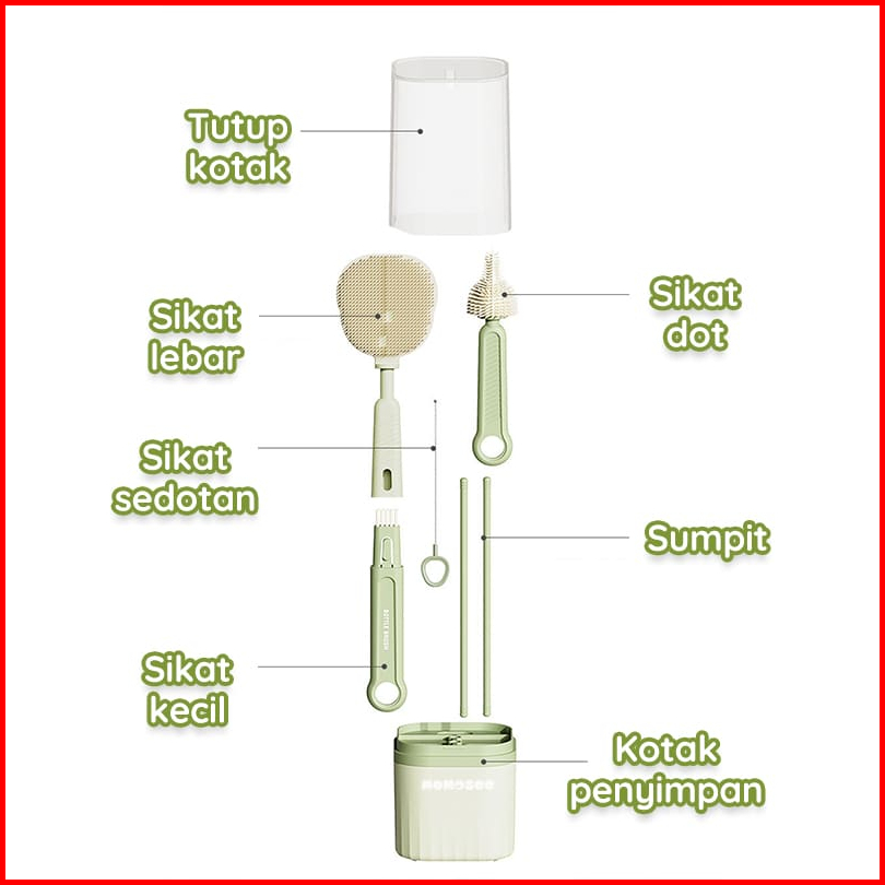 Momosee Sikat Botol Portable Sikat Botol 6in1 Travelling Multifungsi Pembersih Botol Silikon Xh053