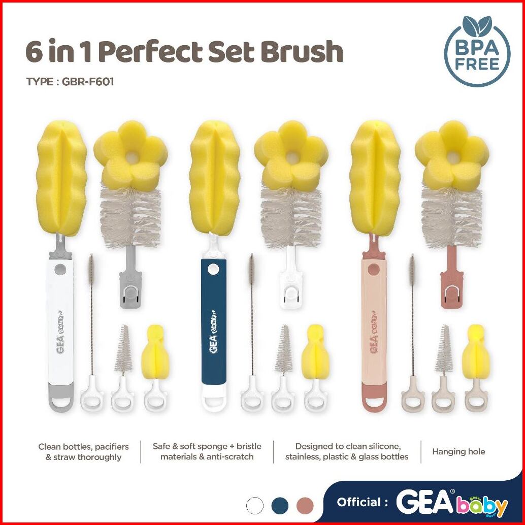 Gea Baby Brush Perfect 6in1 Gbr-f601 Baby Bottle And Nipple Brush Sikat Botol Dot Bayi Pembersih Botol Susu Sikat 1 Set