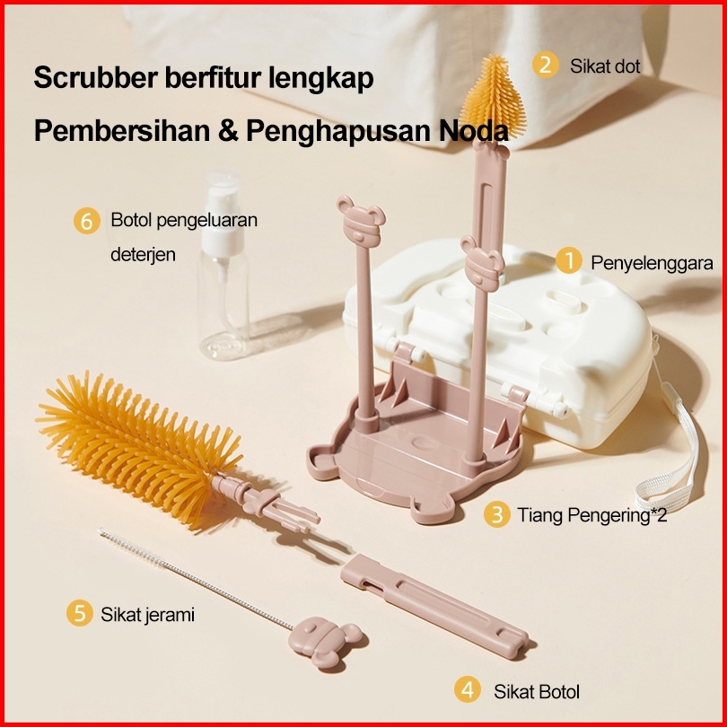 Sikat Botol Bayi Peniris Portabel Untuk Bayi Set Sikat Pembersih Silikon Puting