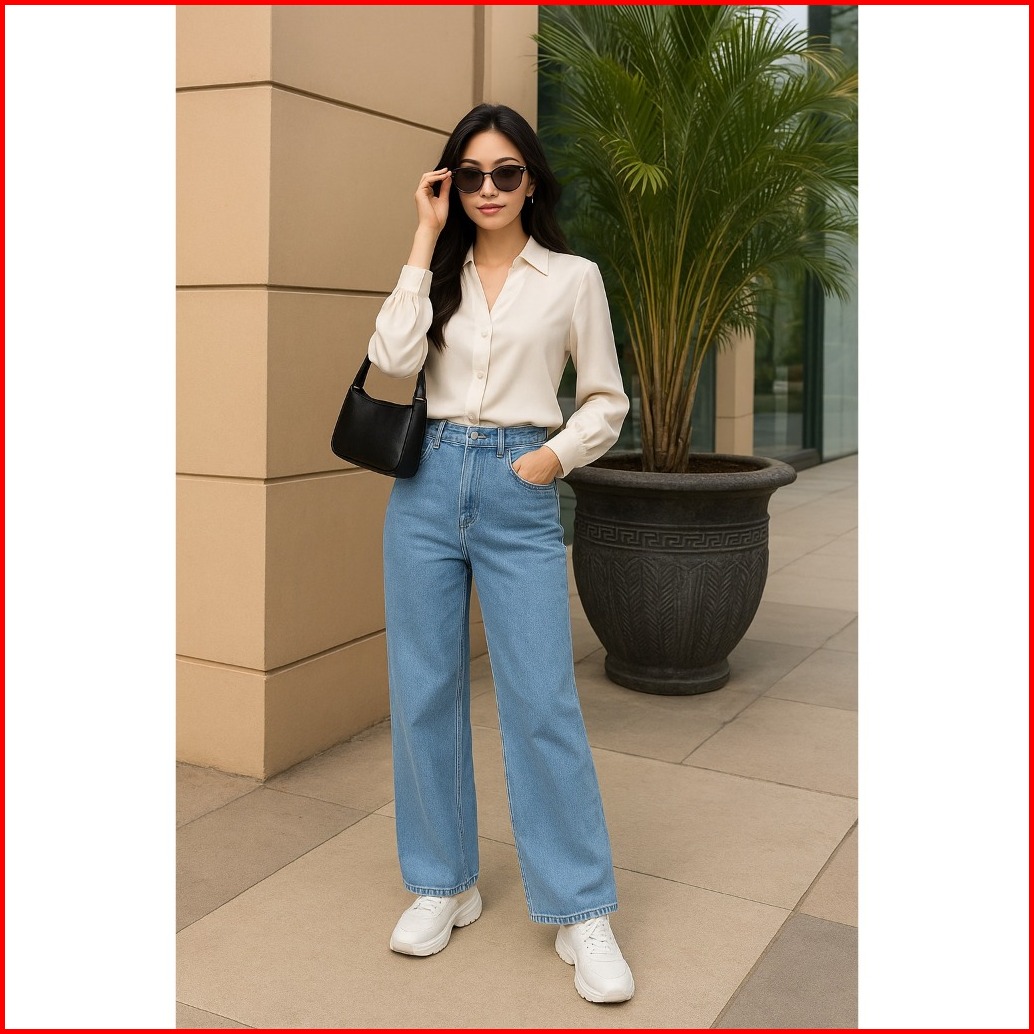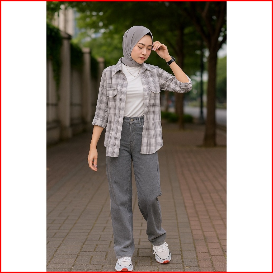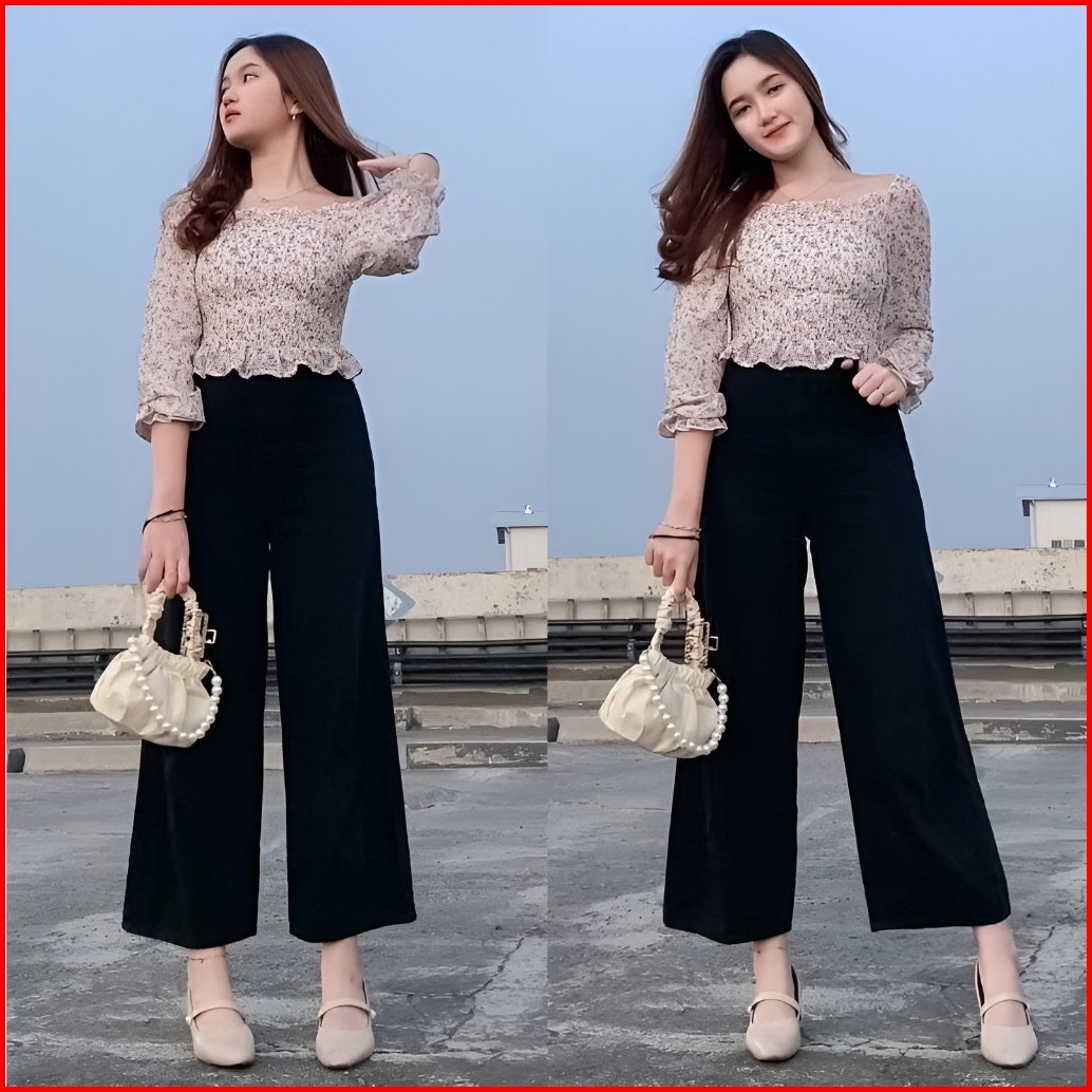 New Celana Kulot Jeans Panjang Haigwaist Loose Wanita Mozza Jeans Kulot Warna