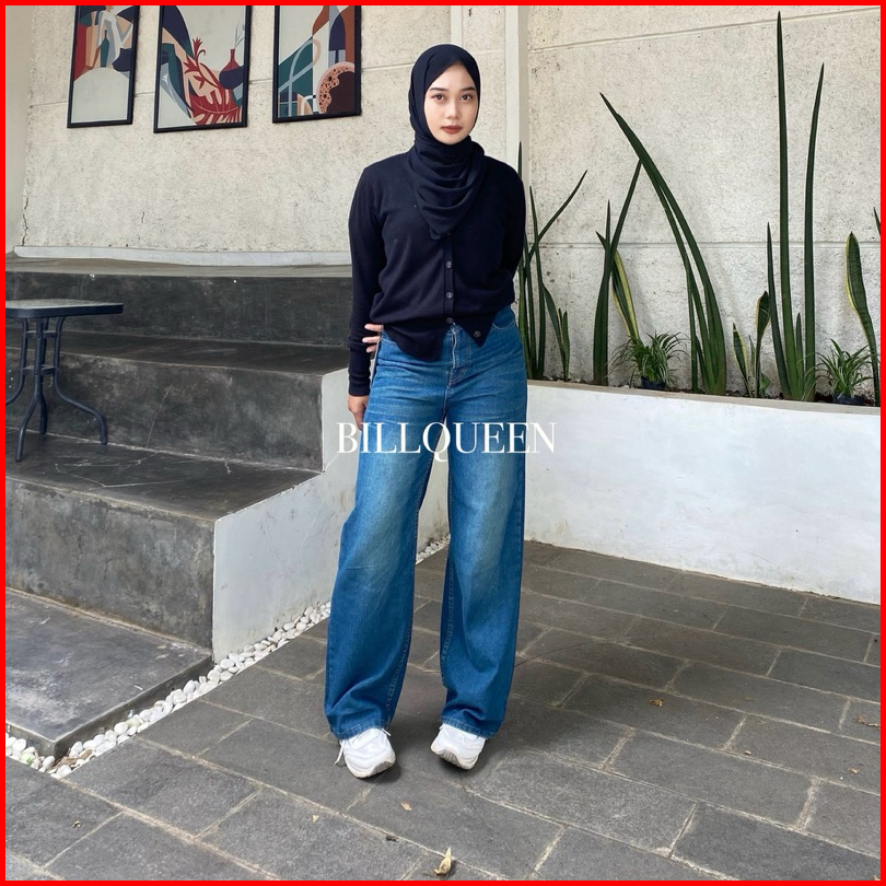 Billqueen-new Korean Style High Waist Loose Gombrong Wanita Murah Celana Jeans Panjang Wanita