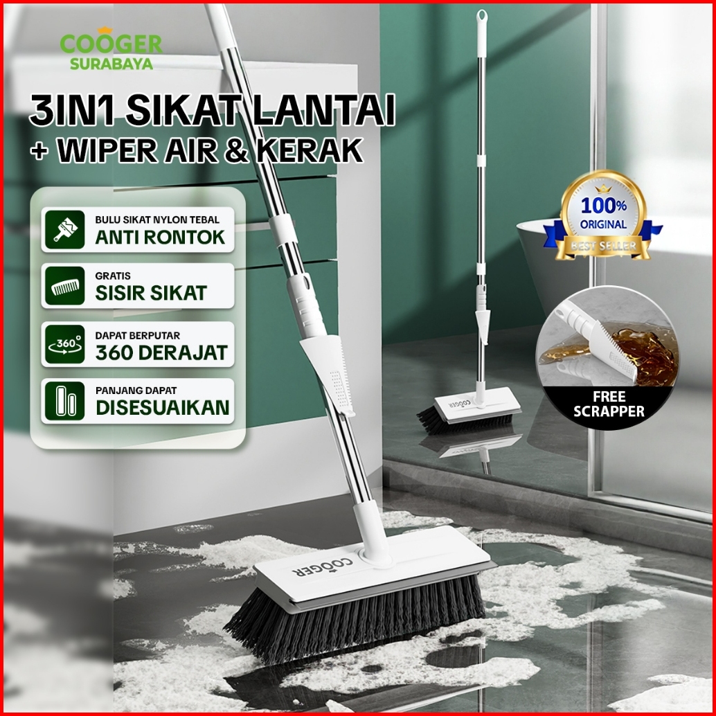 Cooger Sikat Lantai 3in1 Brush Wiper Pembersih Lantai Kamar Mandi Sudut Kaca Dengan Pengeruk Silikon