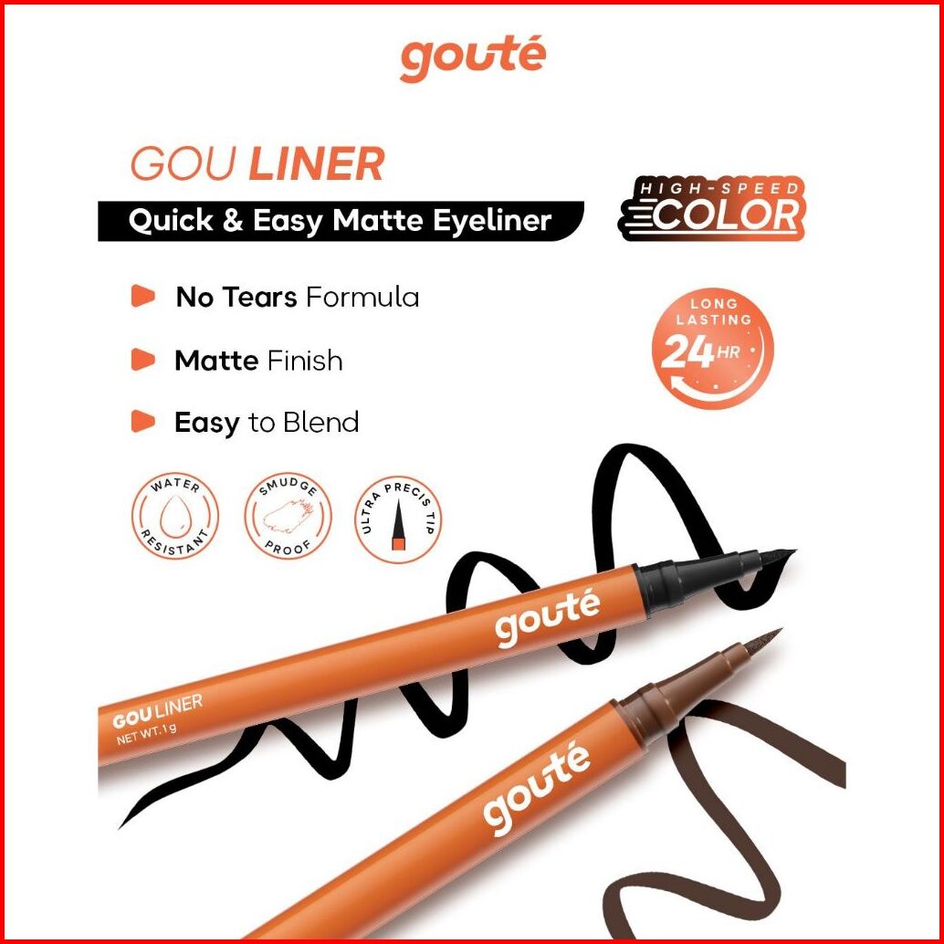 Goute Eyeliner Waterproof - Ultra Precise Tip Long Lasting Upto 24h Smudgeproof Transferproof Gouliner Matte