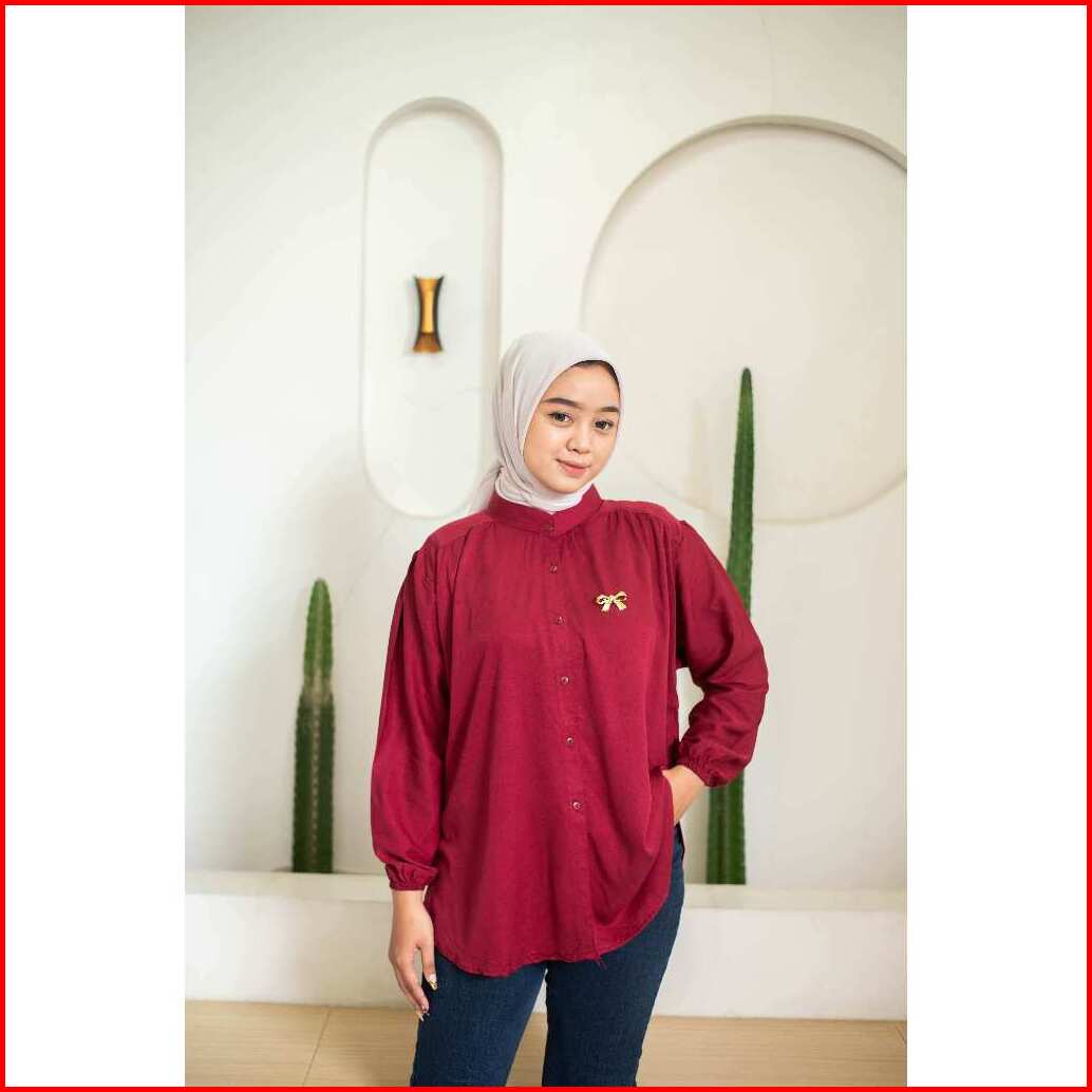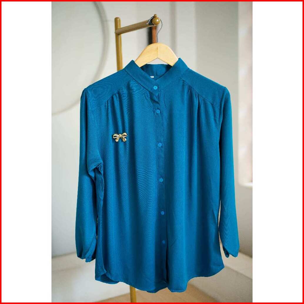 Kemeja Rayon Twill Blouse Rayon Twill Wanita Lengan Karet