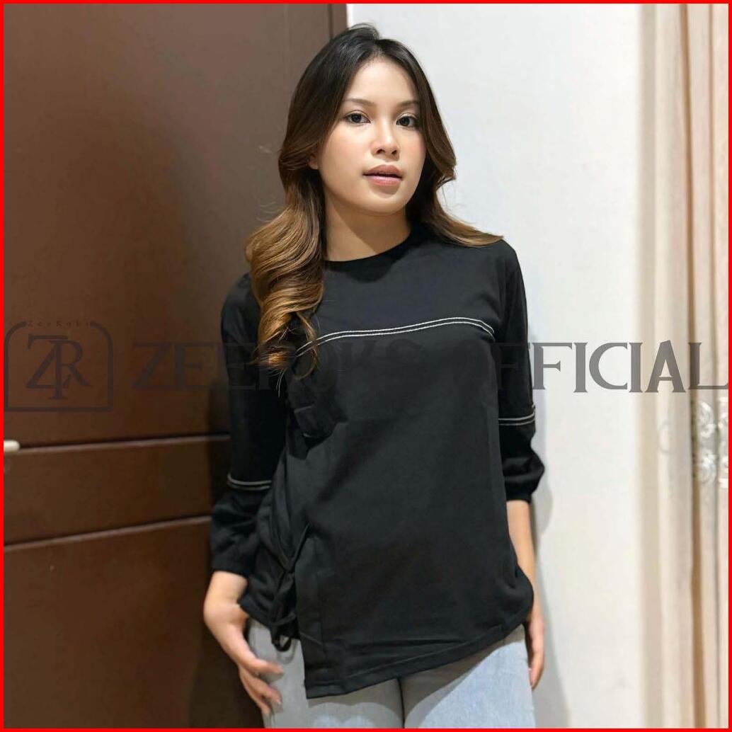 Zeeorks Baju Atasan Wanita Lengan Panjang Oryza Variasi Tali Samping Bahan Cotton Combed Nyaman Untuk Sehari-hari Dan Ac
