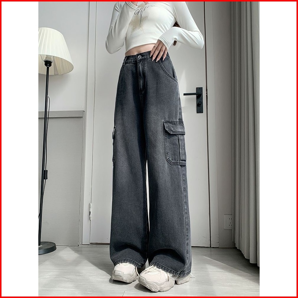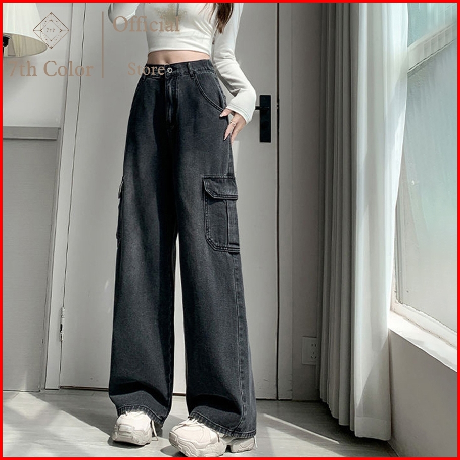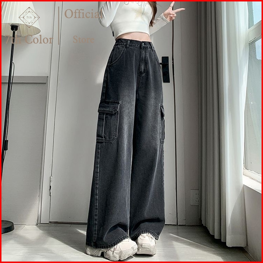 7th Color Ready Kirim Cargo Jeans Panjang Wanita Celana Korean Style Celana Kulot Denim