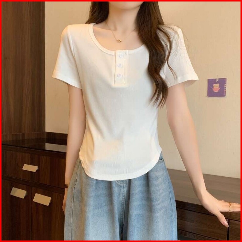 Baju Wanita Korean Style Lengan Pendek Bahu Terbuka Sexy Nyaman Dipakai - Model Trendy Desain Unik Cocok Untuk Hangout D