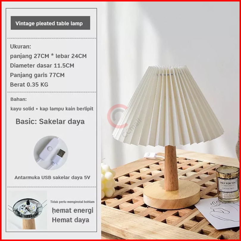 Lampu Tidur Led Wireless Remote Control 3 Color Lampu Wood Meja Hias Kain Led Lampu Vintage Gaya Jepang Lampu