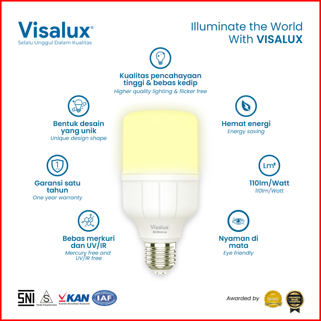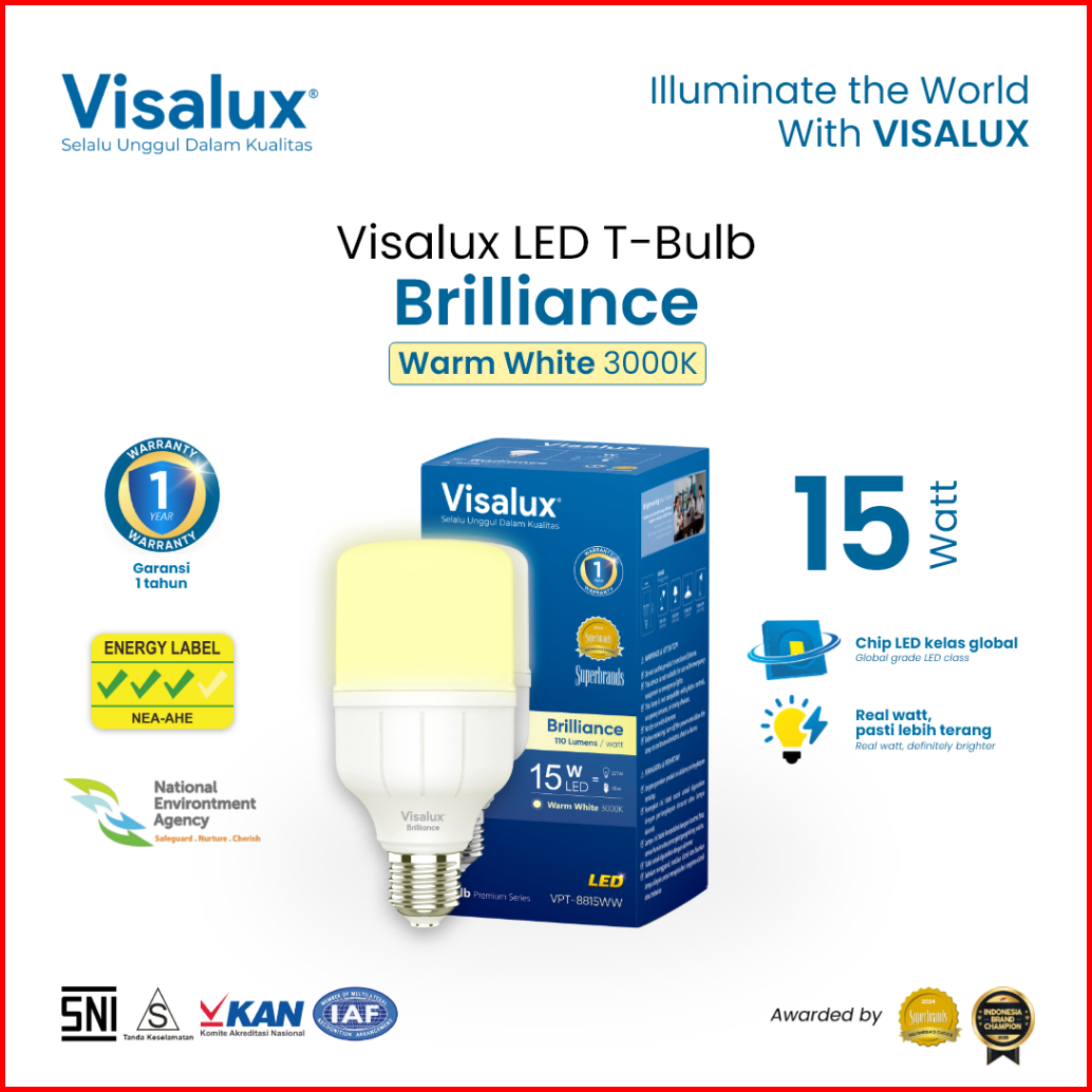 Visalux Lampu Led T-bulb Brilliance 3000k Warmwhite Kuning 15w Bri-vpt8815ww