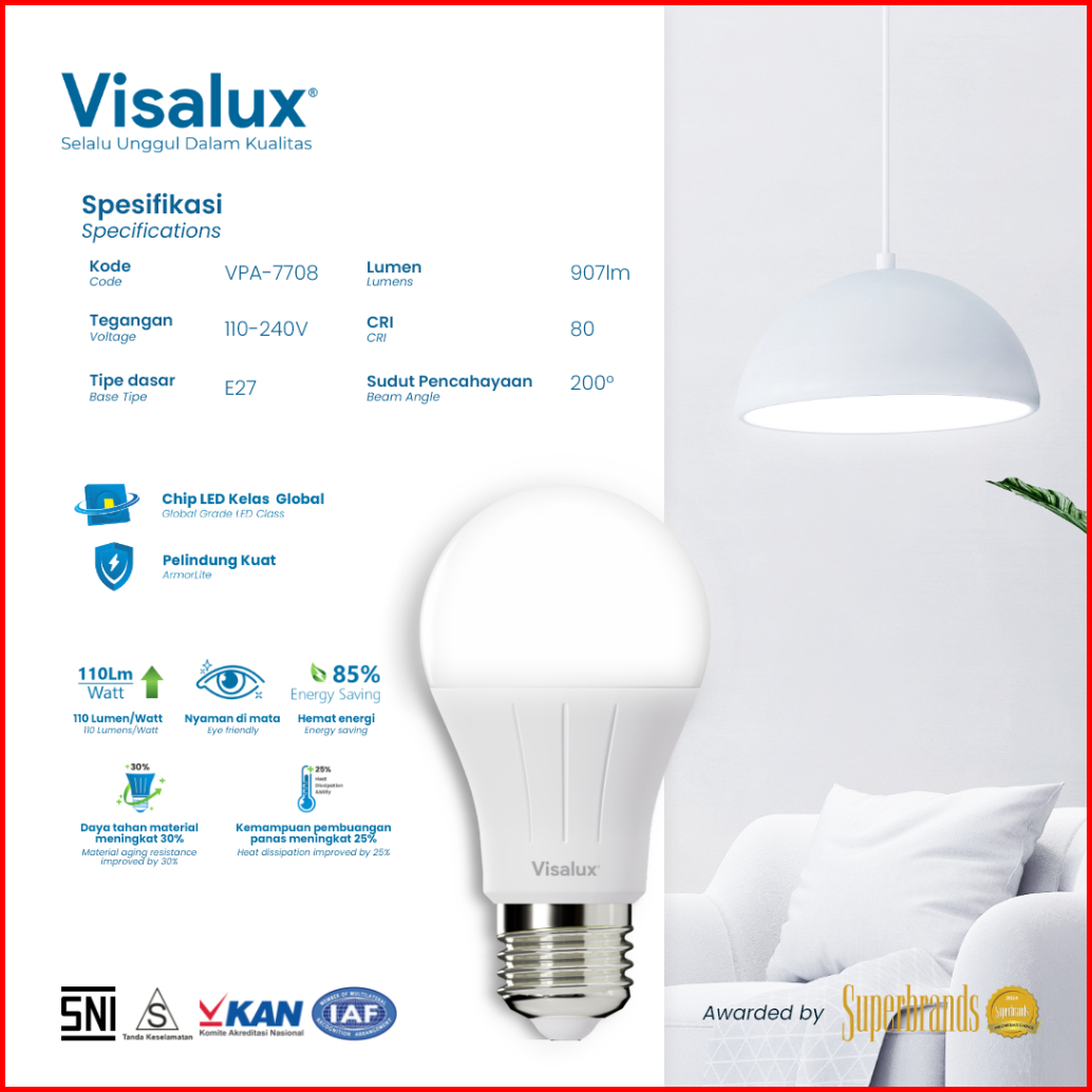 Visalux Lampu Led A-bulb Radiance 6500k Daylight Putih 8w - 4in1 Edition Beli 3 Gratis 1 Rad-vpa7708dl 4in1