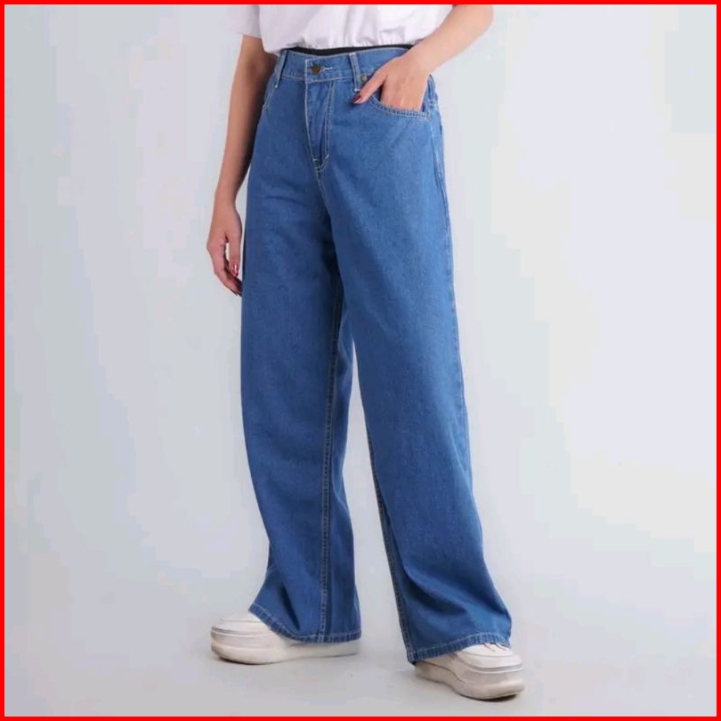Celana Jeans Pria Baggy Pants Korean Style Oversize Straight Loose Blue Reguler Fit Wide Leg Skena Termurah Kekinian