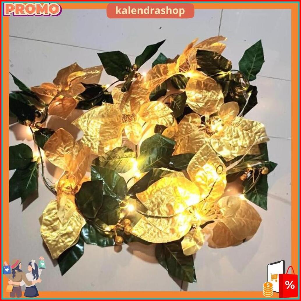 Hiasan Natal Garland Bunga Poinsettia Lampu String Led Lentera Karangan Bunga Natal Diy Dekorasi Natal