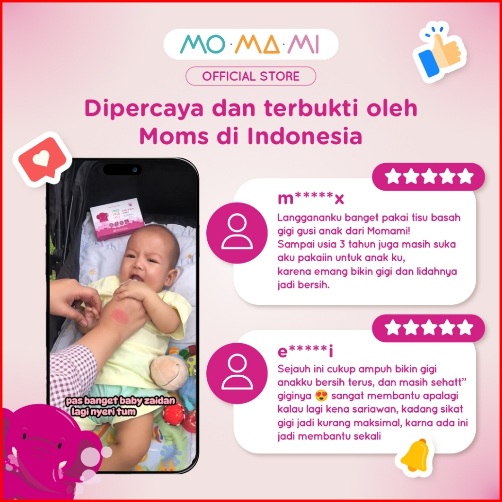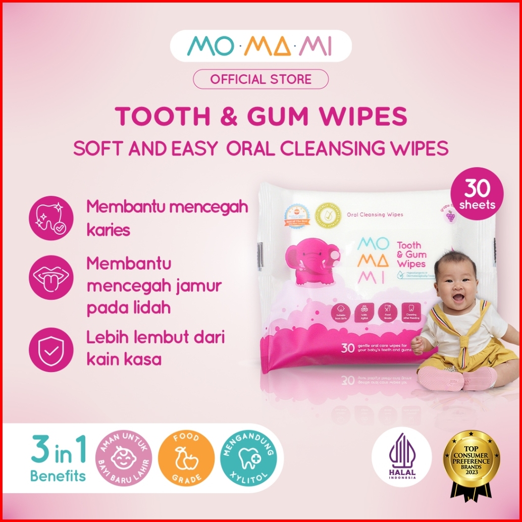 Momami Tooth Gum Wet Wipes Baby Tissue - Tisu Basah Xylitol Pembersih Gigi Bayi Travel Friendly