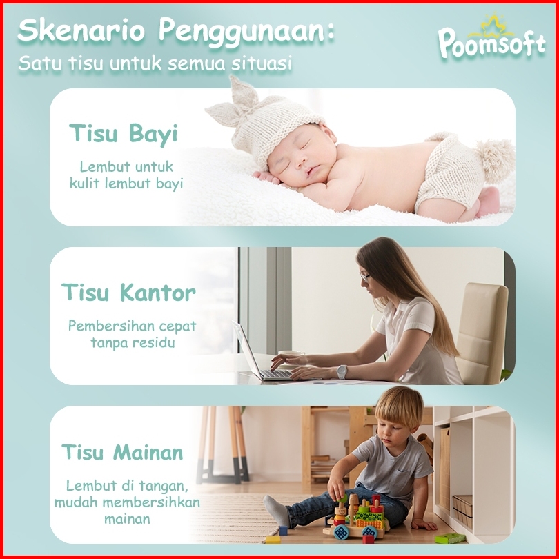 Poomsoft 5 Packs X 80 Lembar Tisu Basah Bayi Lembut Tanpa Aroma Alkohol - Set Bundel Perlengkapan Bayi Disertifikasi Ole