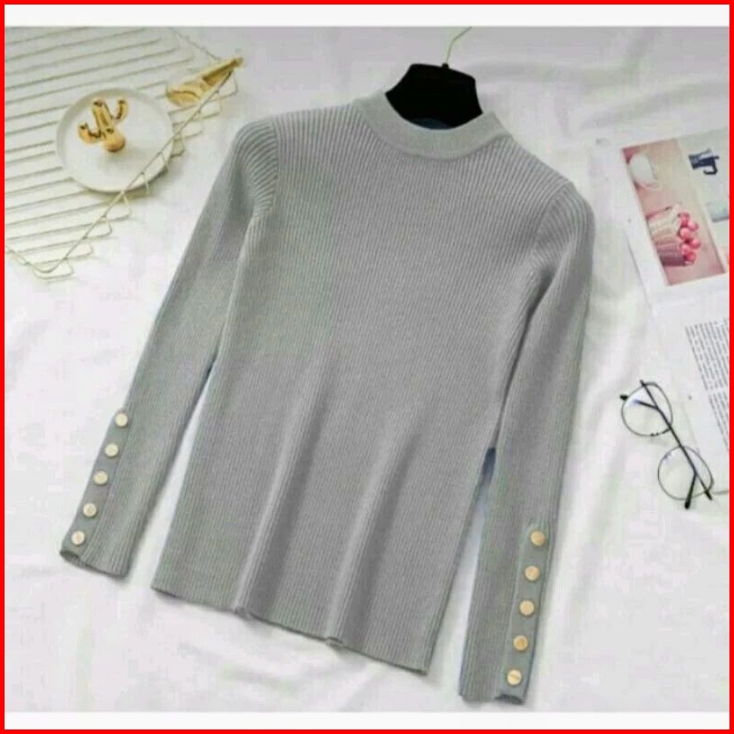 Manset Inara Rajut Wanita Turtileneck Knit Kancing
