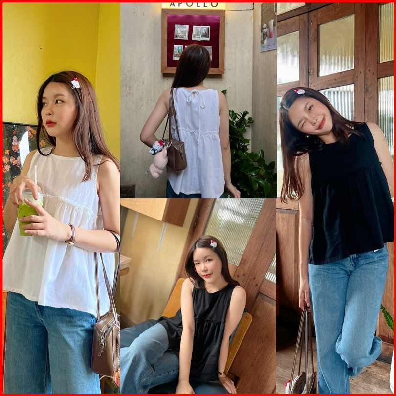 Gaury Linen Top Tank Top Blouse Atasan Wanita Korea Style