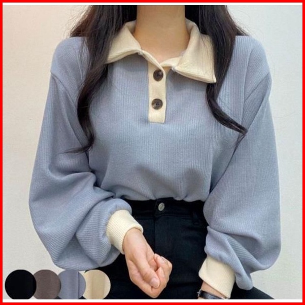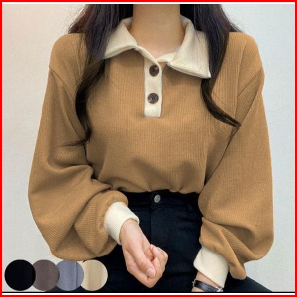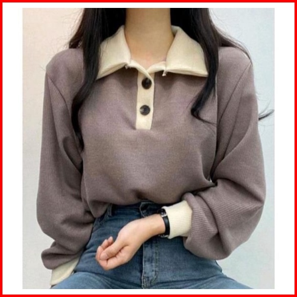 Sweater Wanita Collar Girl Sweater Kancing Polos Kerah Bahan Flecee