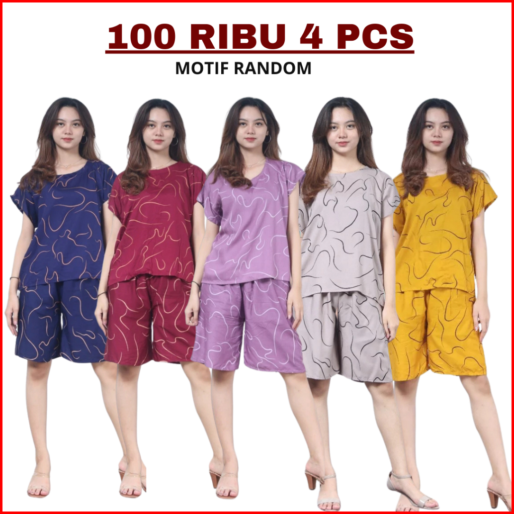 100 Ribu Dapat 4 Pcs One Set Setelan Baju Tidur Piyama Babydoll Wanita Kekinian Korean Style Premium Anak Perempuan