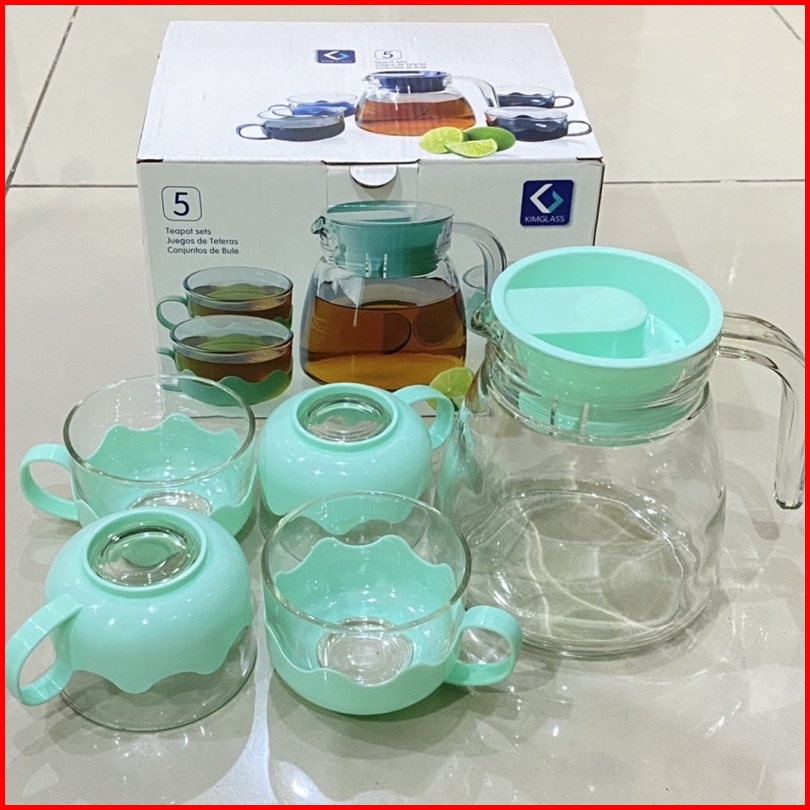 Pitcher Set 5 In 1 Teko Set Kaca Kado Kimglass Bulat Motif Telur Granada