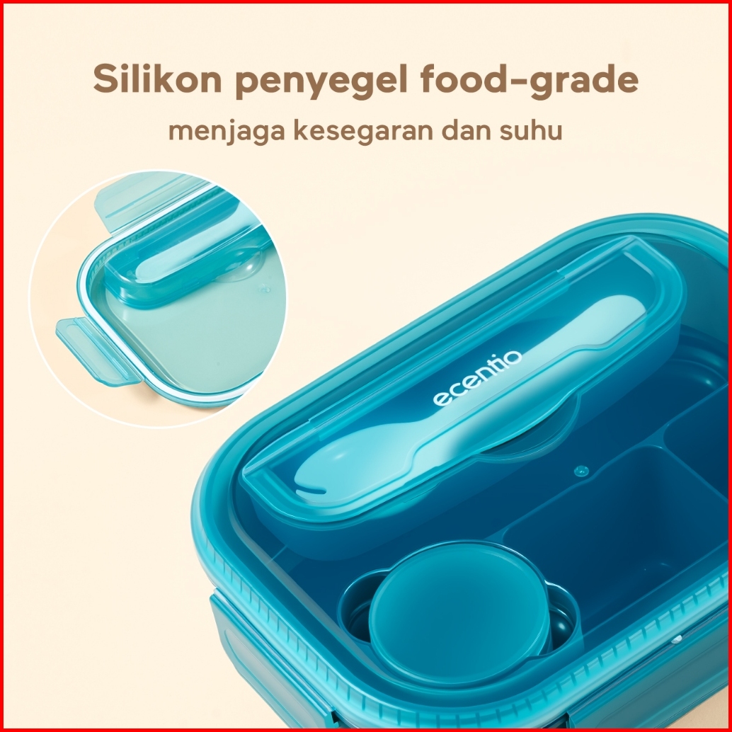 2pcs Setecentio Foodi Lunch Box Set Kotak Bekal Anti Tumpah 4 Sekat Grid 1100ml 1200ml Set Anak Dan 500ml Botol Lunch Bo