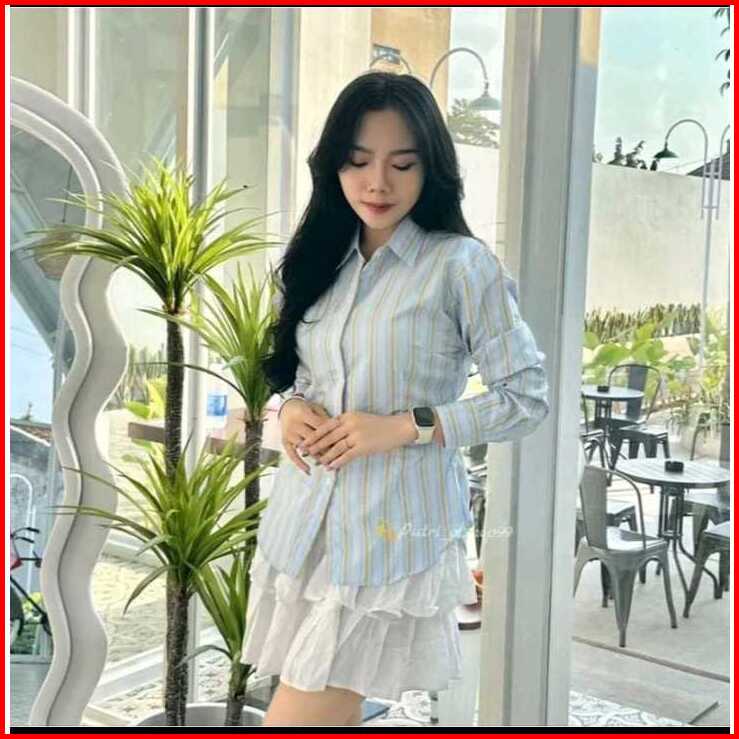 Lyvynco Monney Fitted Shirt Salur Motif Stripe - Kemeja Kerja Wanita Fit Lembut