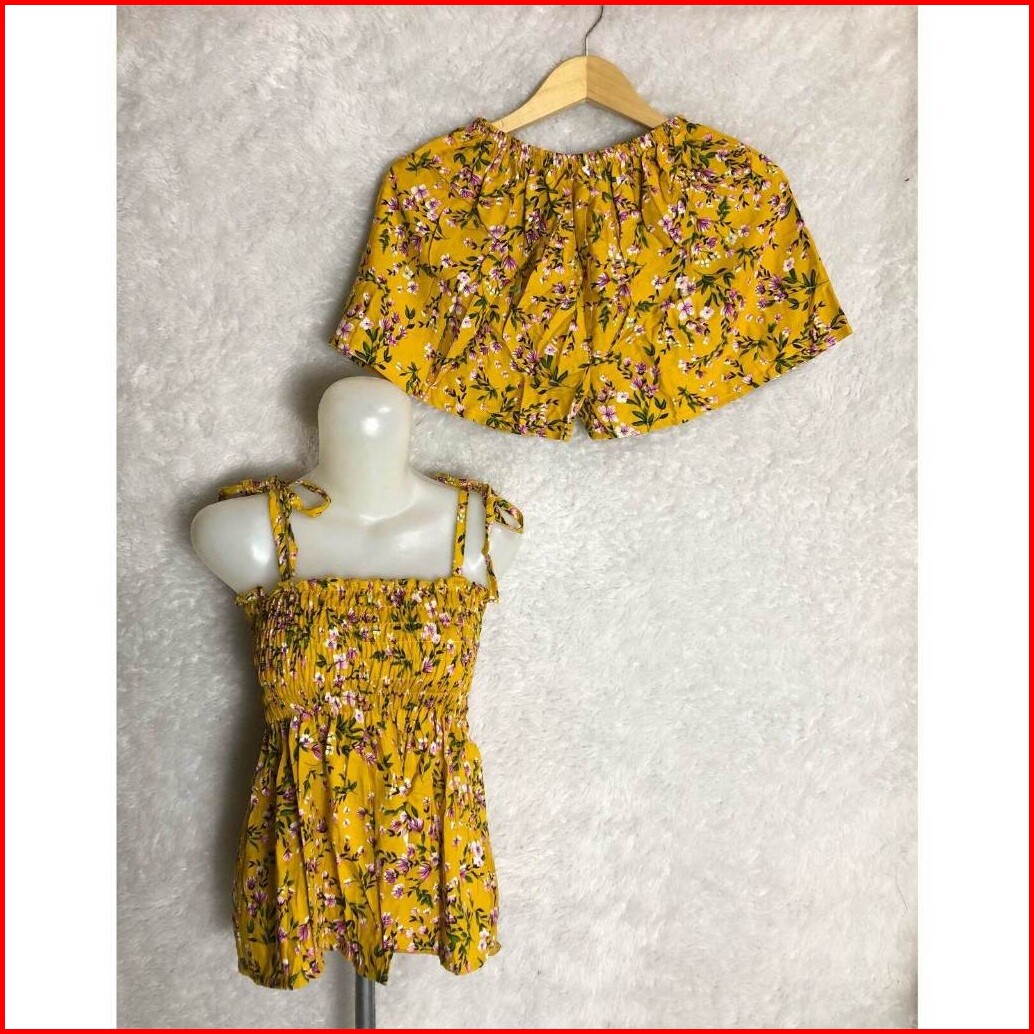 Set Atasan Tangtop Celana Pendek Bunga