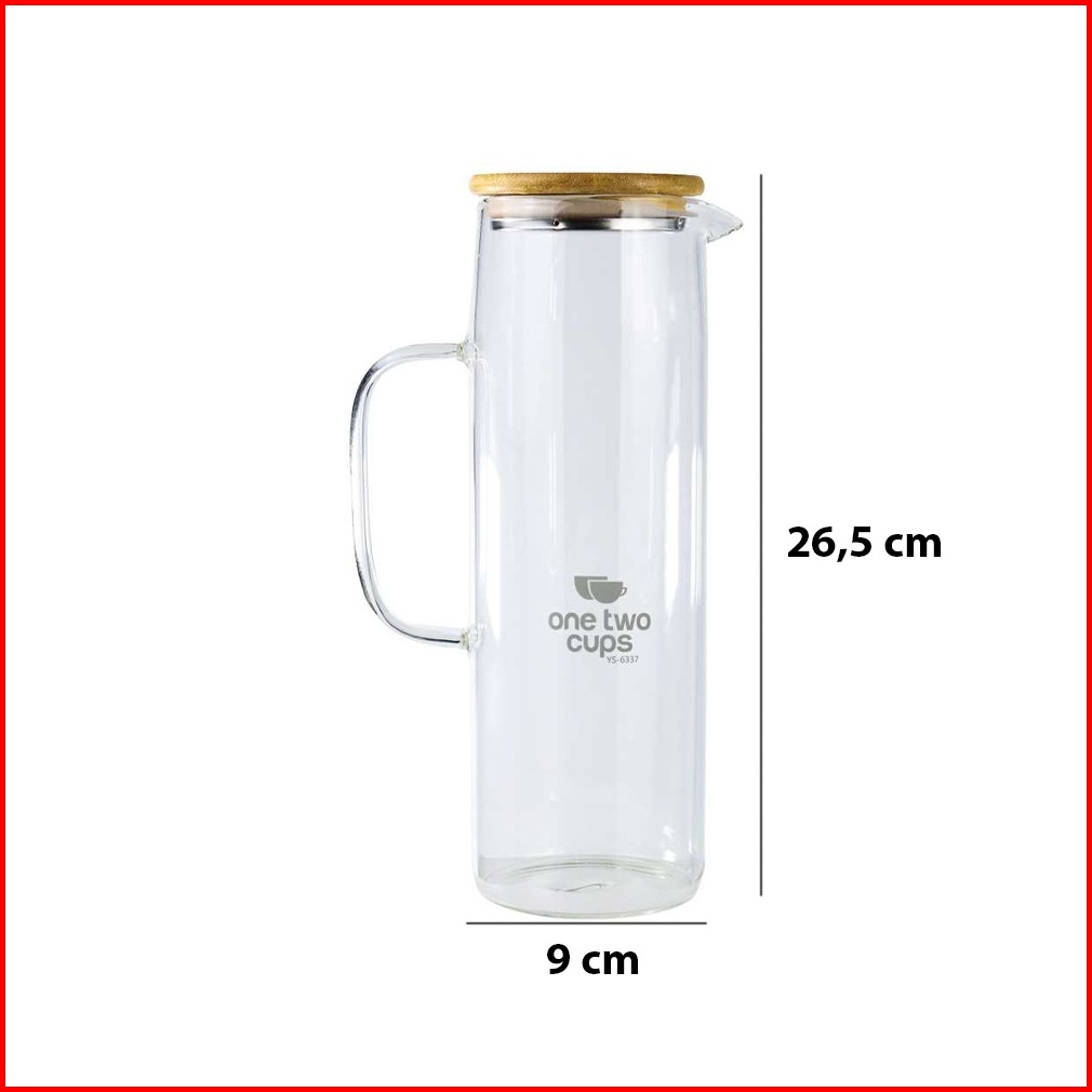 Teko Pitcher Jug Kaca Tahan Panas Dengan Tutup Kayu Teko Tempat Minuman Bahan Kaca Tahan Panas