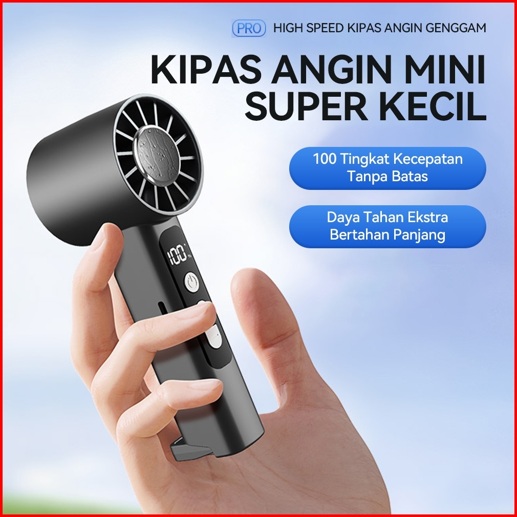 Vitanest Kipas Angin Genggam High Speed Turbo Kipas Angin Mini Portable 100 Tingkat Kecepatan Pengisian Typec