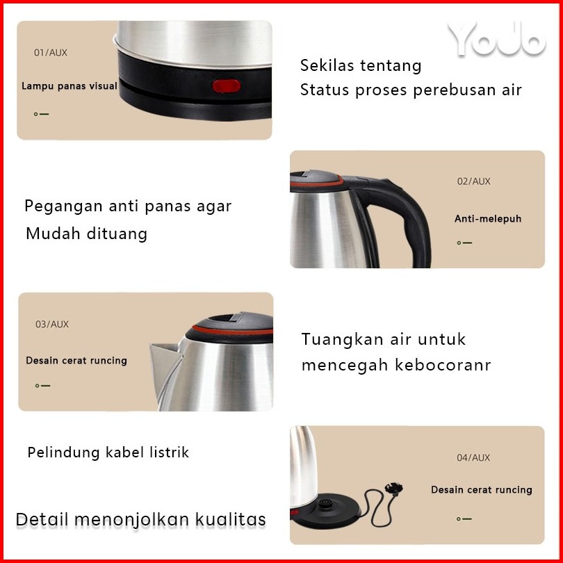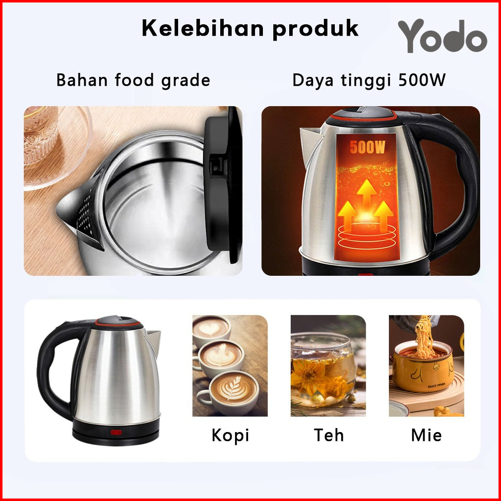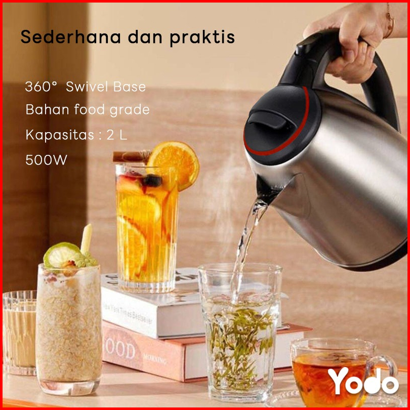 Teko Listrik 2 Liter 500 Watt Stainless Steel Pemanas Air Electric Kettle Ketel Besar Otomatis Mati Sendiri