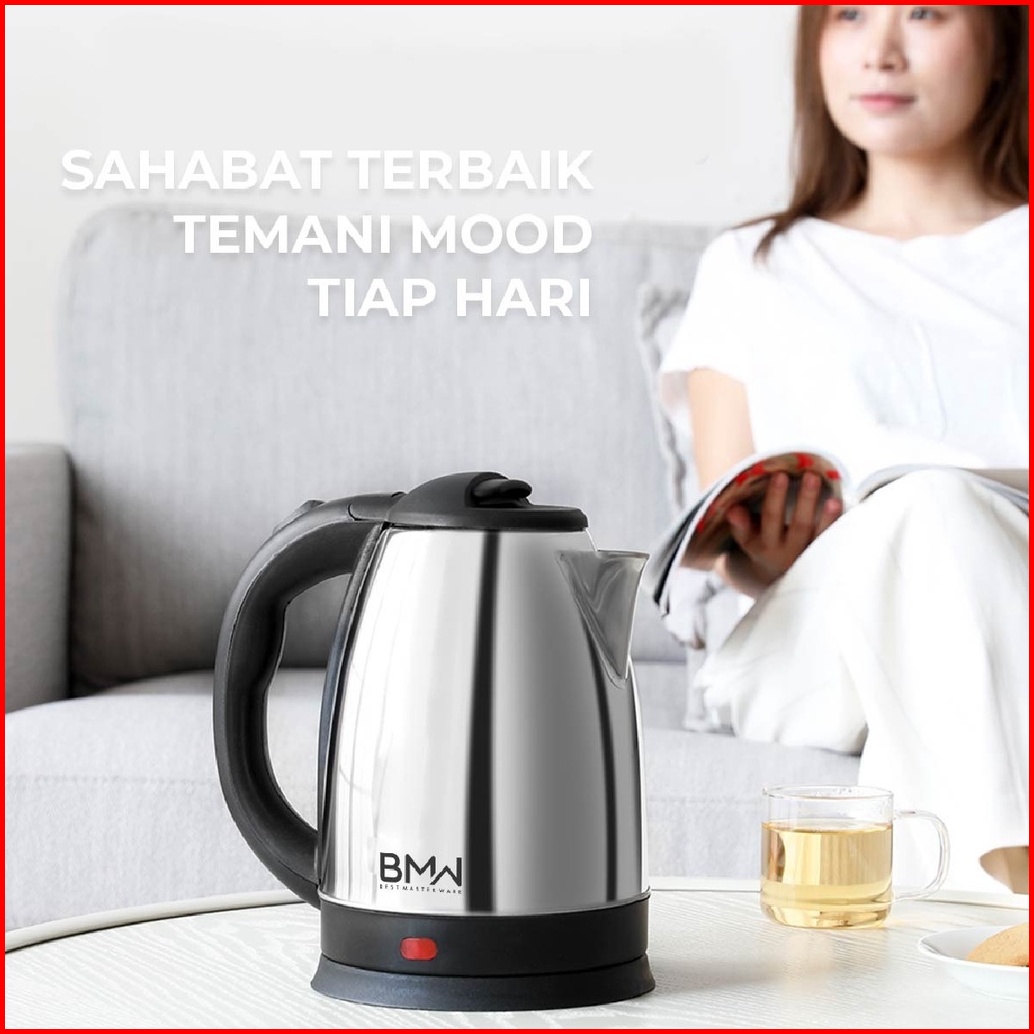 Original Bmw Teko Air Minum Teko Kettle Electric Teko Listrik 2 Liter 400 Watt Stainless Steel Pemanas Air Kettle Besar
