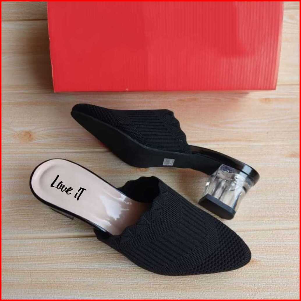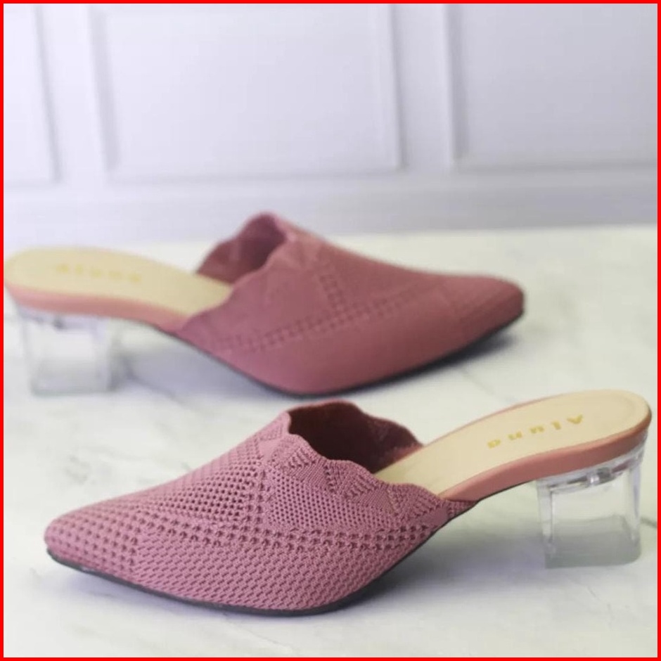 Juragan Online - Sandal Wisuda High Heels Hak Kaca Wanita Laluna Bahan Rajut Terbaru