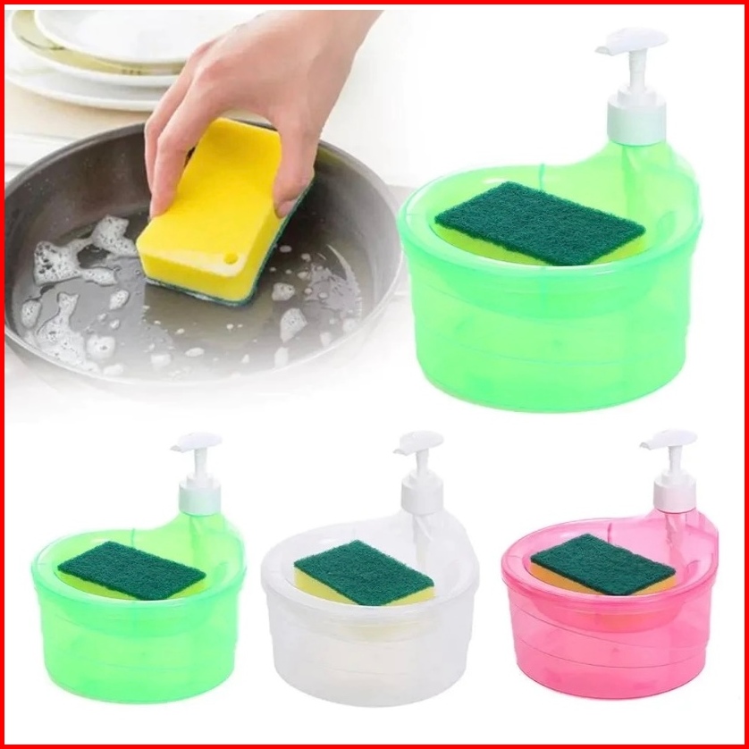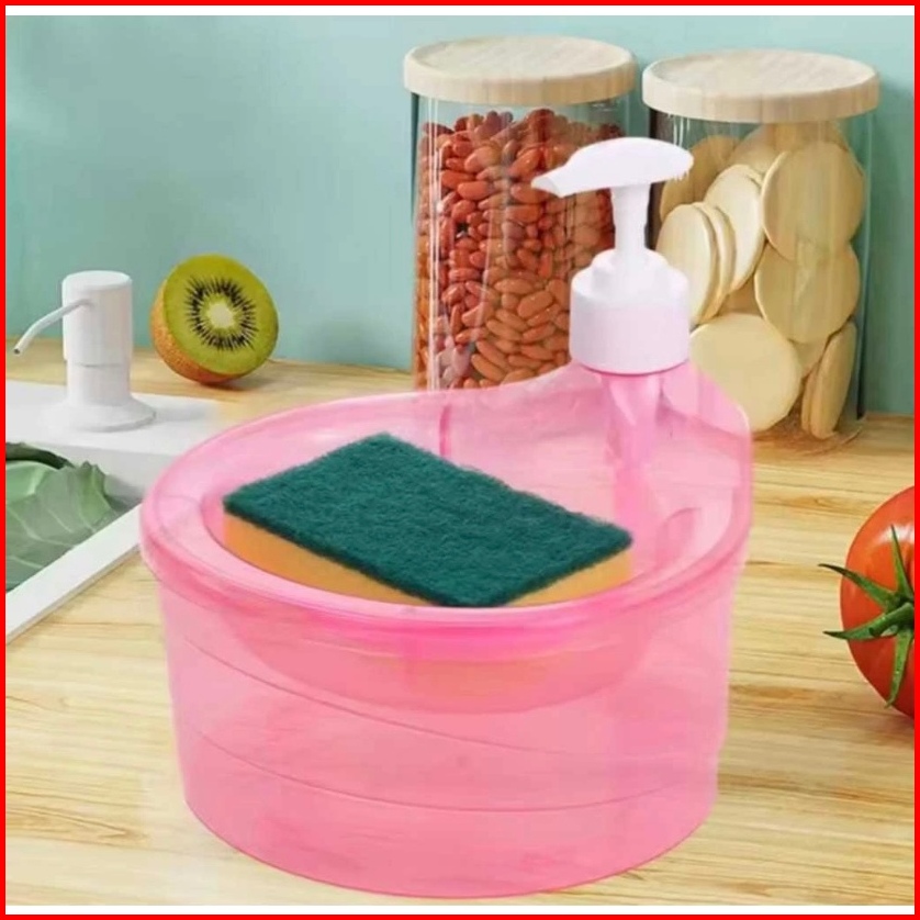 Promo Dispenser Sabun Cuci Piring 2in1 Bentuk Mangkok Bulat Soap Pump Dispenser 2in1 Multifungsi Free Busa Sponge Tempat
