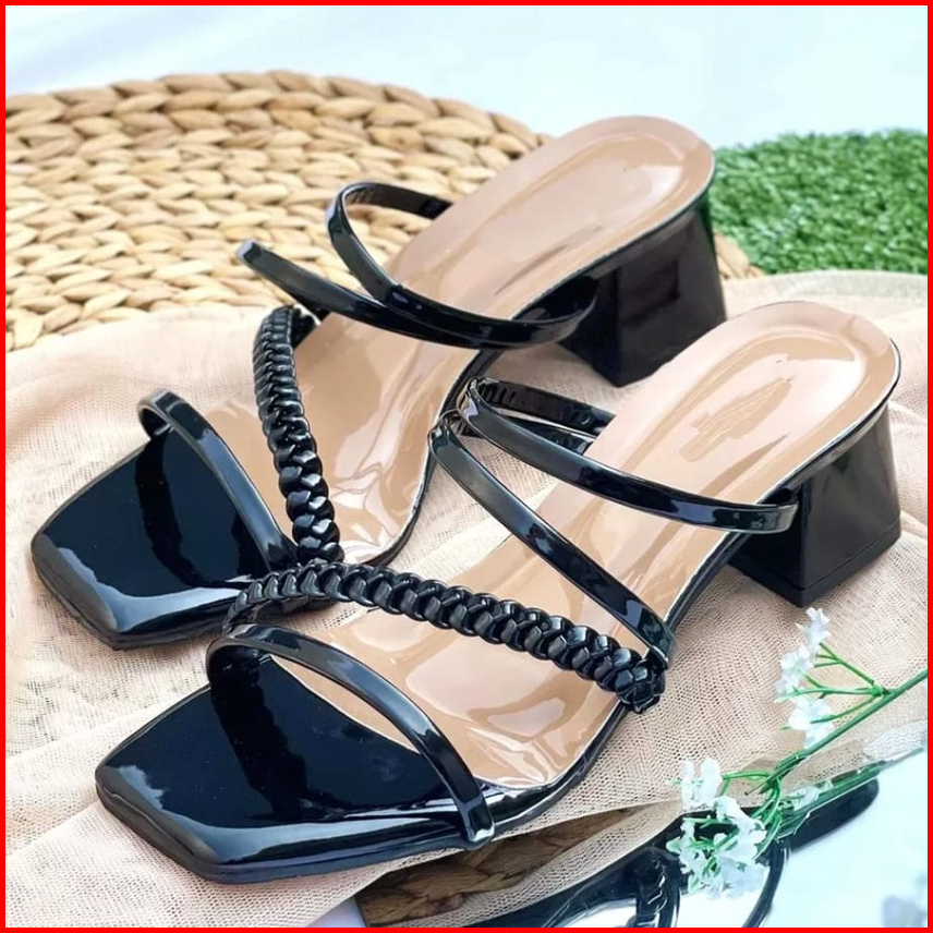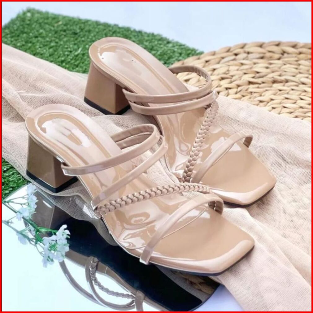 Nindy High Heels Tali Kepang Sandal Wanita Motif Anggun Tampilan Cantik Sangat Nyaman Digunakan