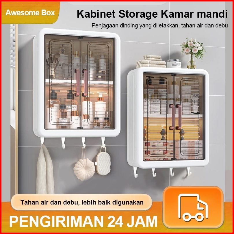 Rak Lemari Dinding Kamar Mandi Multifungsi Rak Penyimpanan Plastik Tahan Air Lemari Kamar Mandi Tertutup Yang Dipasang D
