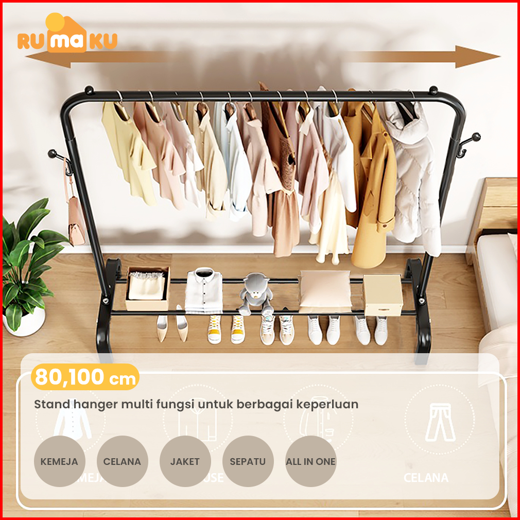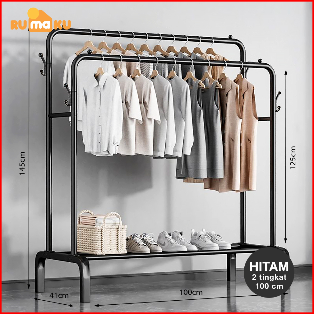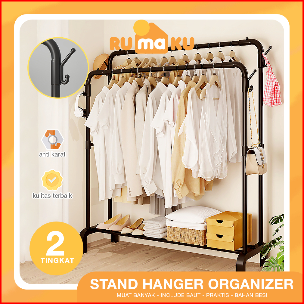 Rmk Stand Hanger 2 Layer Gantungan Baju Berdiri Bahan Besi Gawangan Pakaian Serbaguna