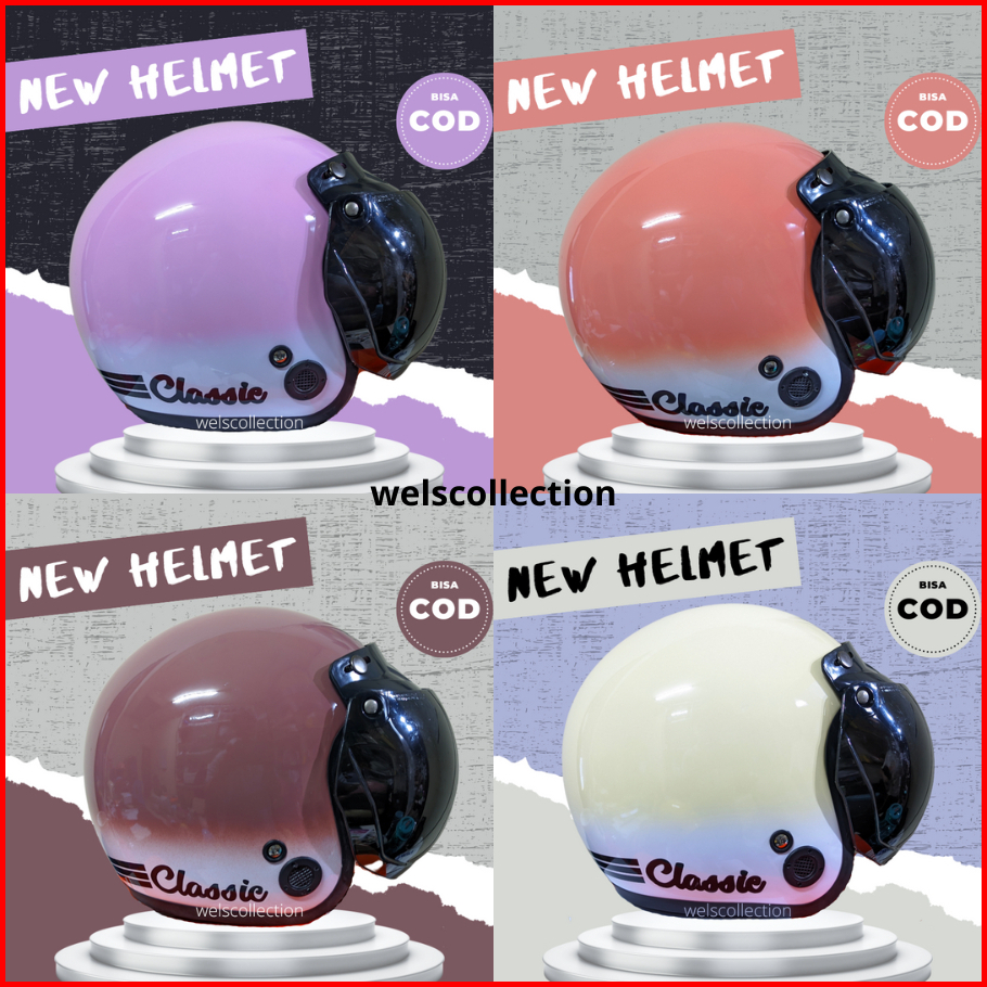 Helm Bogo Retro Motif Gradasi Dewasa Helm Bogo Garis Tiga Atau Helm Dua Warna Cocok Di Gunakan Pria Dan Wanita Dewasa Ku