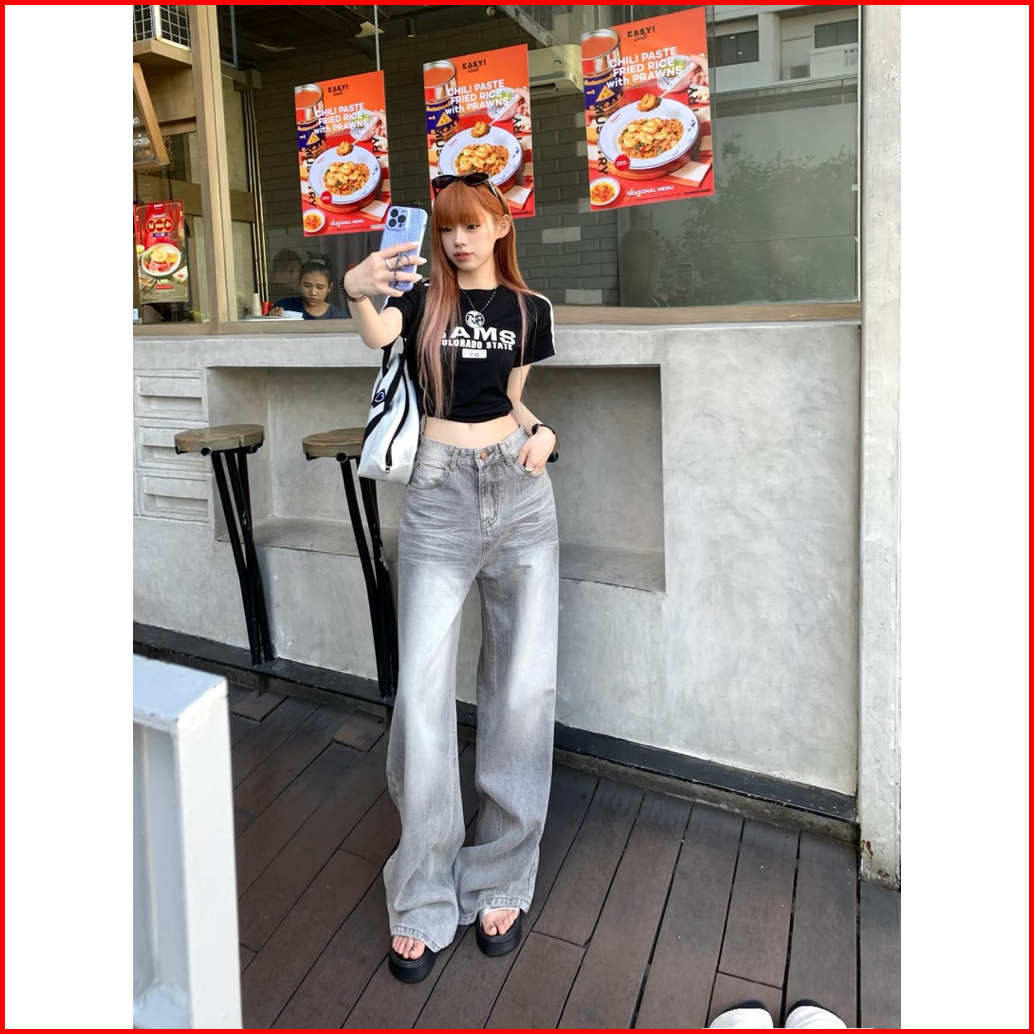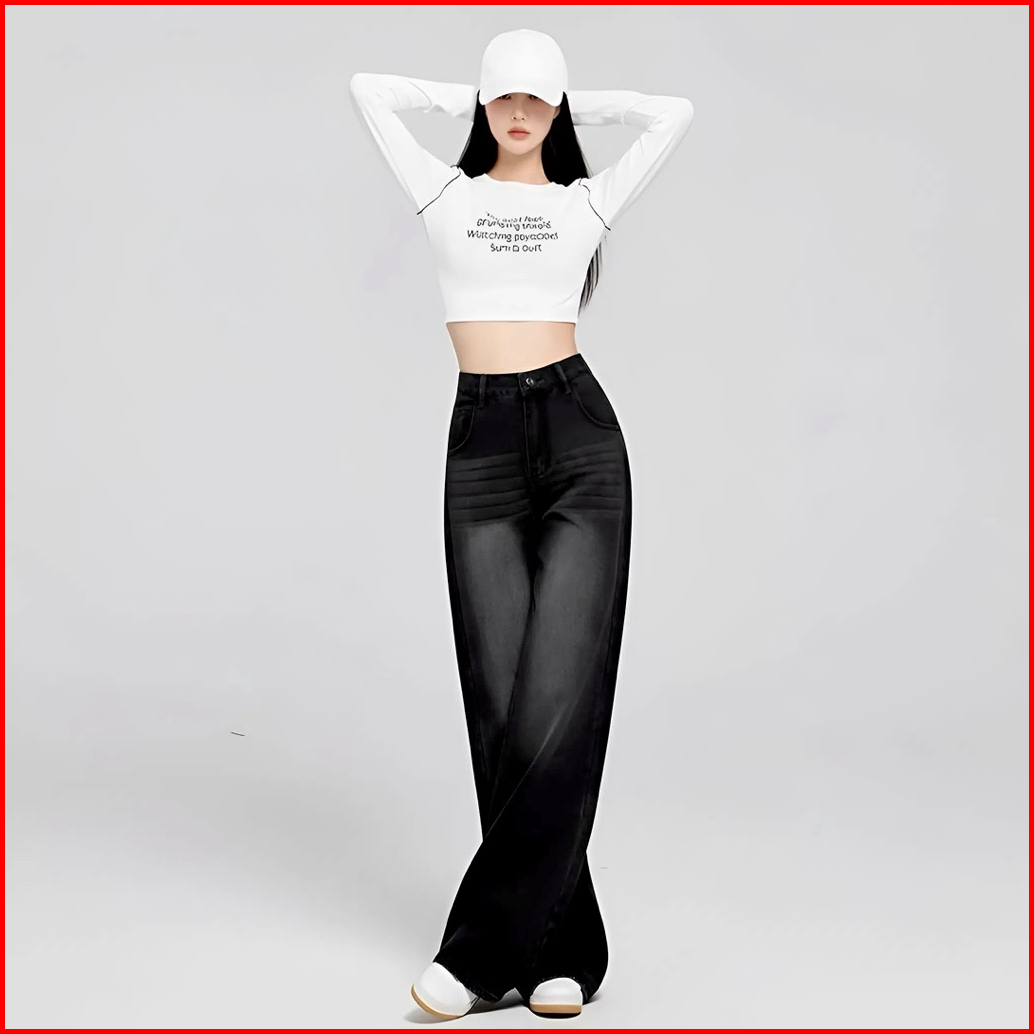 Luxe S - Highwaist Baggy Jeans Hangover Wanita Korean Style Loose Skena Blackwisker