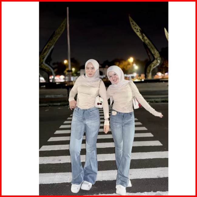 Laure Celana Jeans Cutbray Wanita Kekinian Lipat Lebar Highwaist Cutbray Jeans Stretch Bahan Melar 27-38