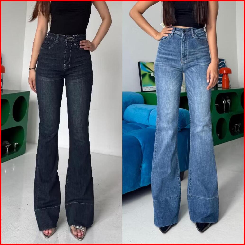 Kenzie High Waist Cutbray Jeans Lipat Lebar Celana Flare Panjang Stretch Wanita