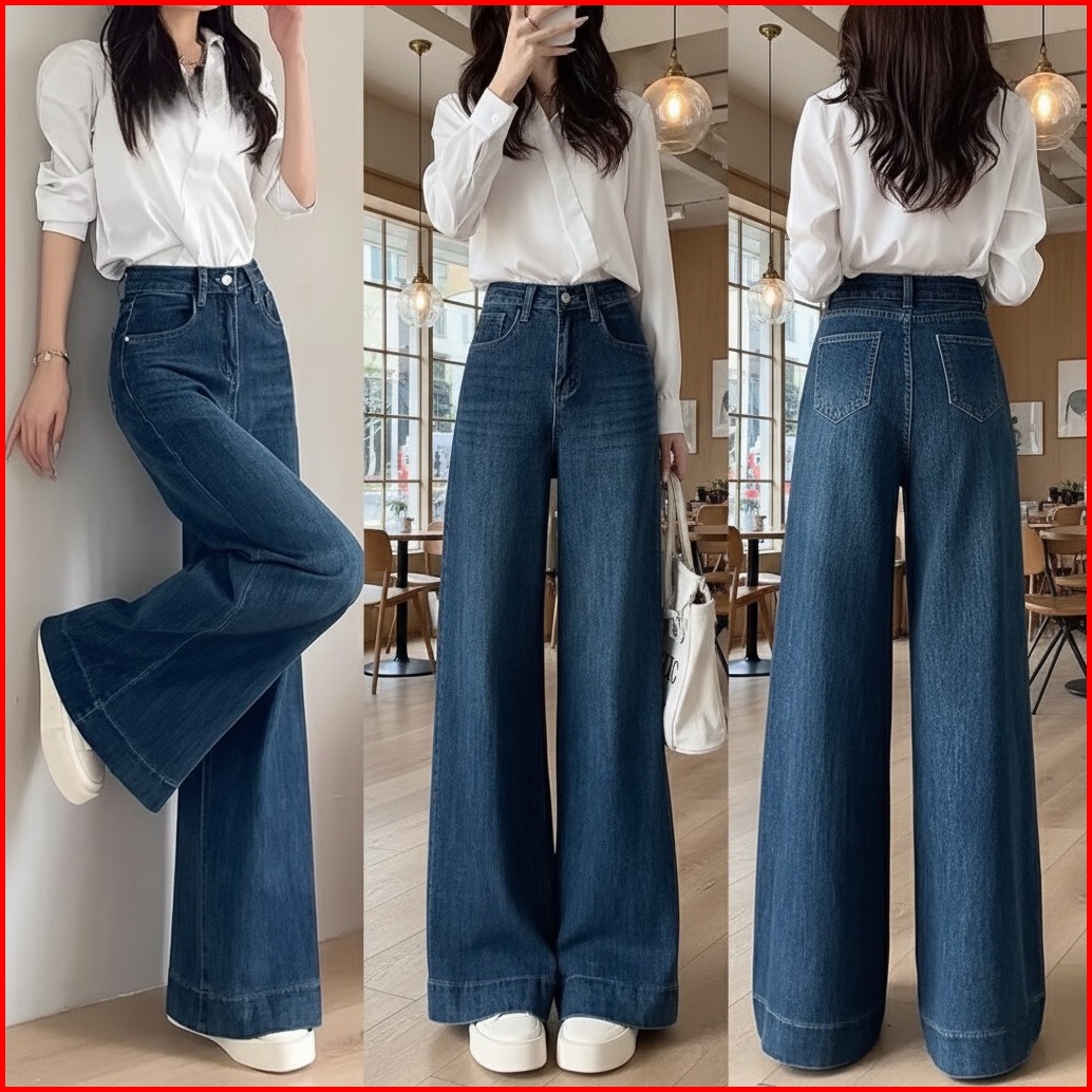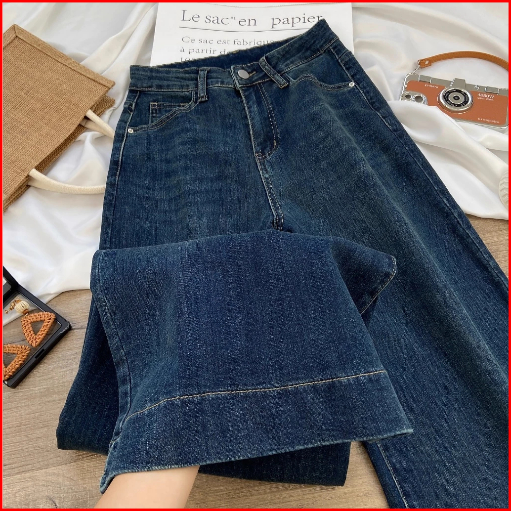 Celana Jeans Wanita Baggy Oversize Loose High Waist Wide Leg Korean Look Kekinian Biru Retro