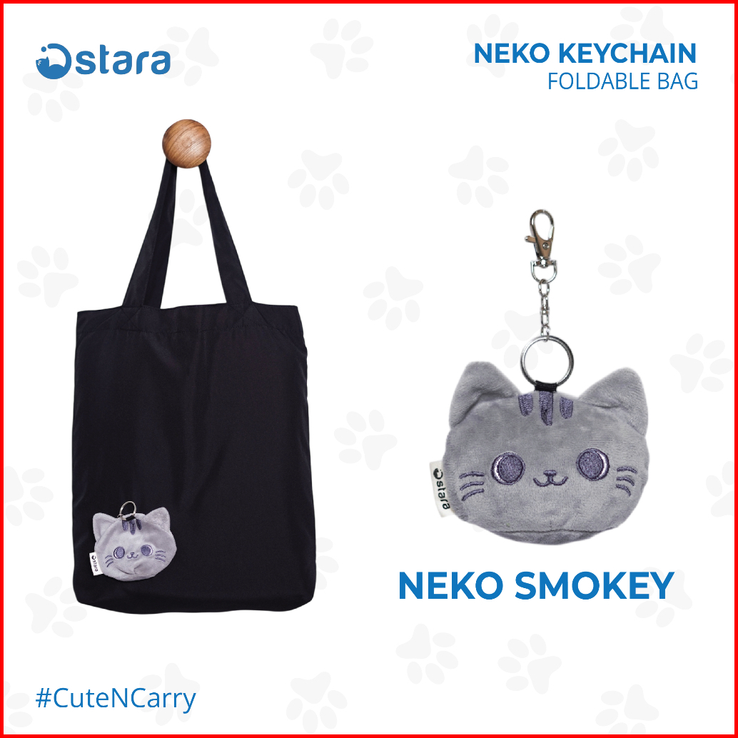 Ostara Tas Belanja Lipat - Neko Tas Lipat Tas Travel Lipat Tote Bag Lipat Gantungan Kunci