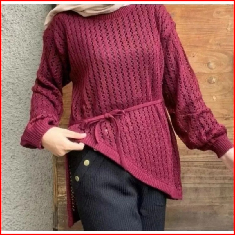 Sweater Rajut Berongga Wanita Lengan Panjang Jaring Premium Terbaru - Tali Knitwear Acrylic - Baju Atasan Blouse Korean