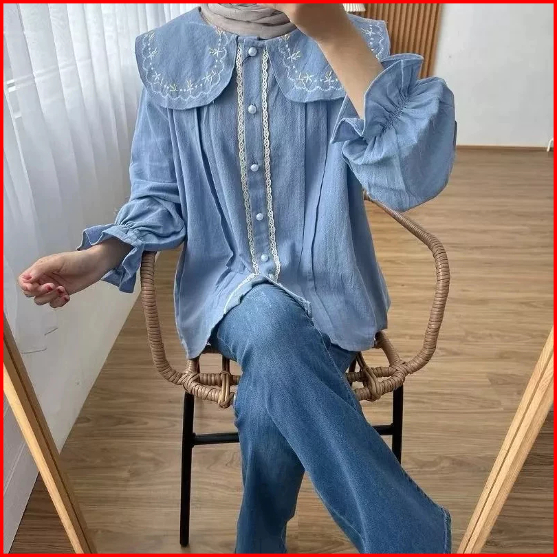 Clea Blouse Atasan Wanita Bordir Bunga Linen Bahan Adem Busui Hijab Korean Style Terbaru Diskon 50