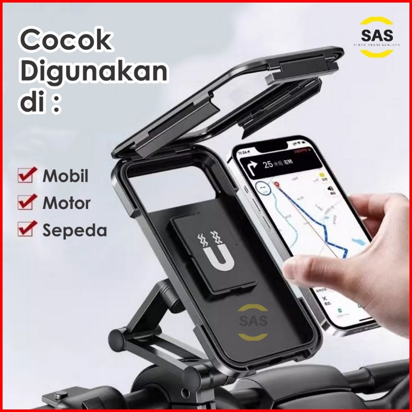 Sas Holder Hp Motor Waterproof Anti Air Kuat Kokoh Untuk Pemasangan Di Stang Motor Phone Holder Waterproof