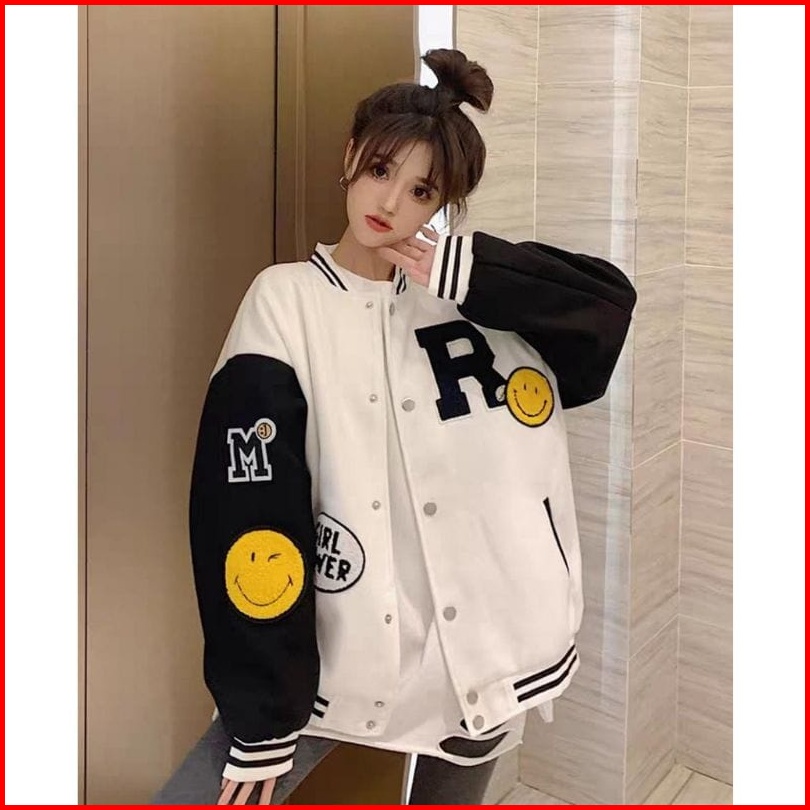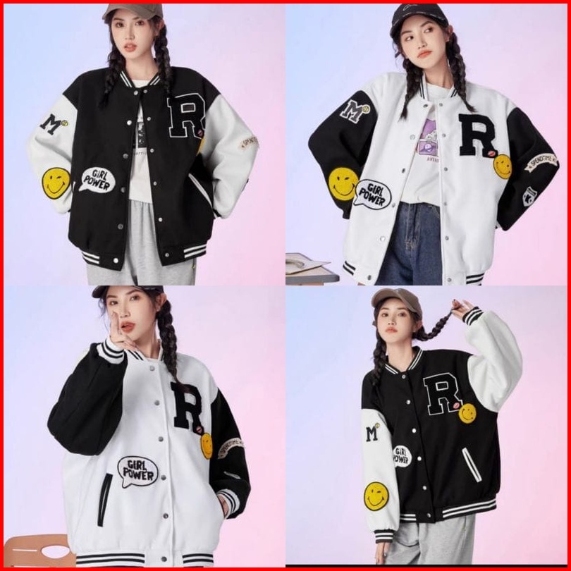 R Smile Varsity Jaket Baseball Oversize - Jaket Varsity Wanita - Baseball Jaket