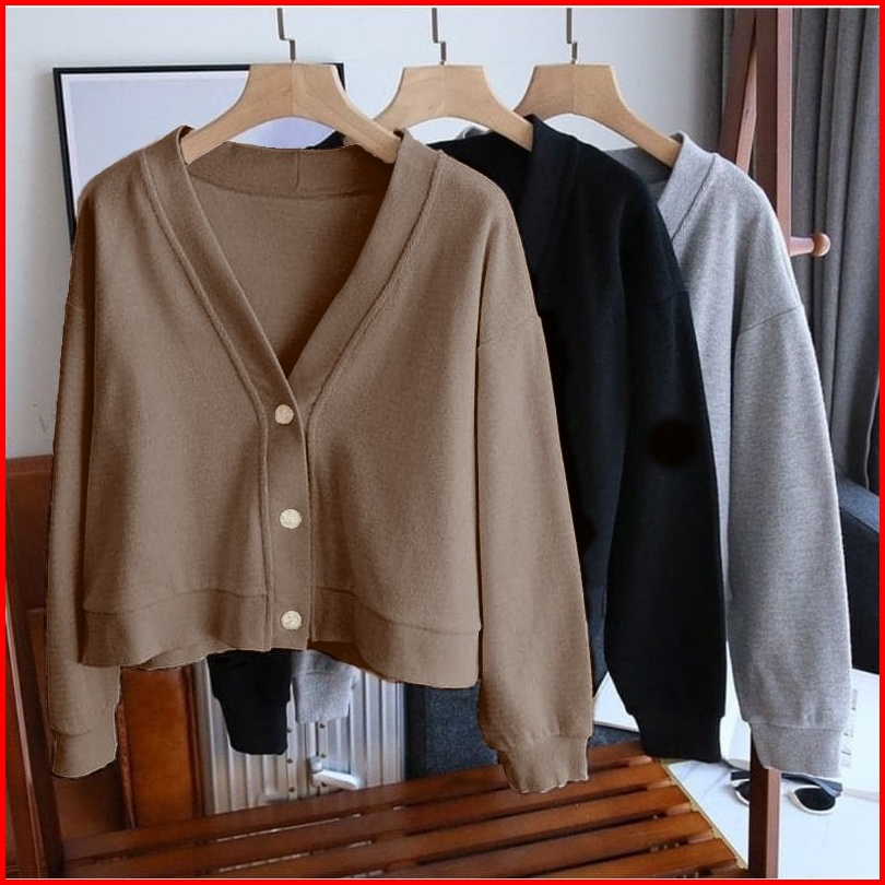 Kareen Crope Button Sweater - Sweater Crop Wanita - Outer Wanita