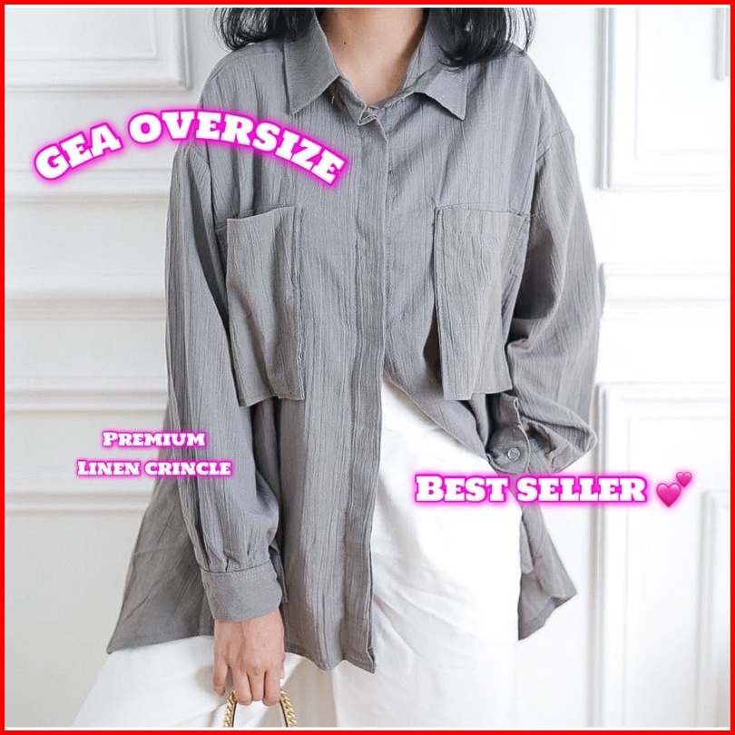 Girlfashionstory Original Sp Gea Oversize Linen Krinkle Kemeja